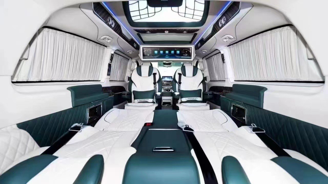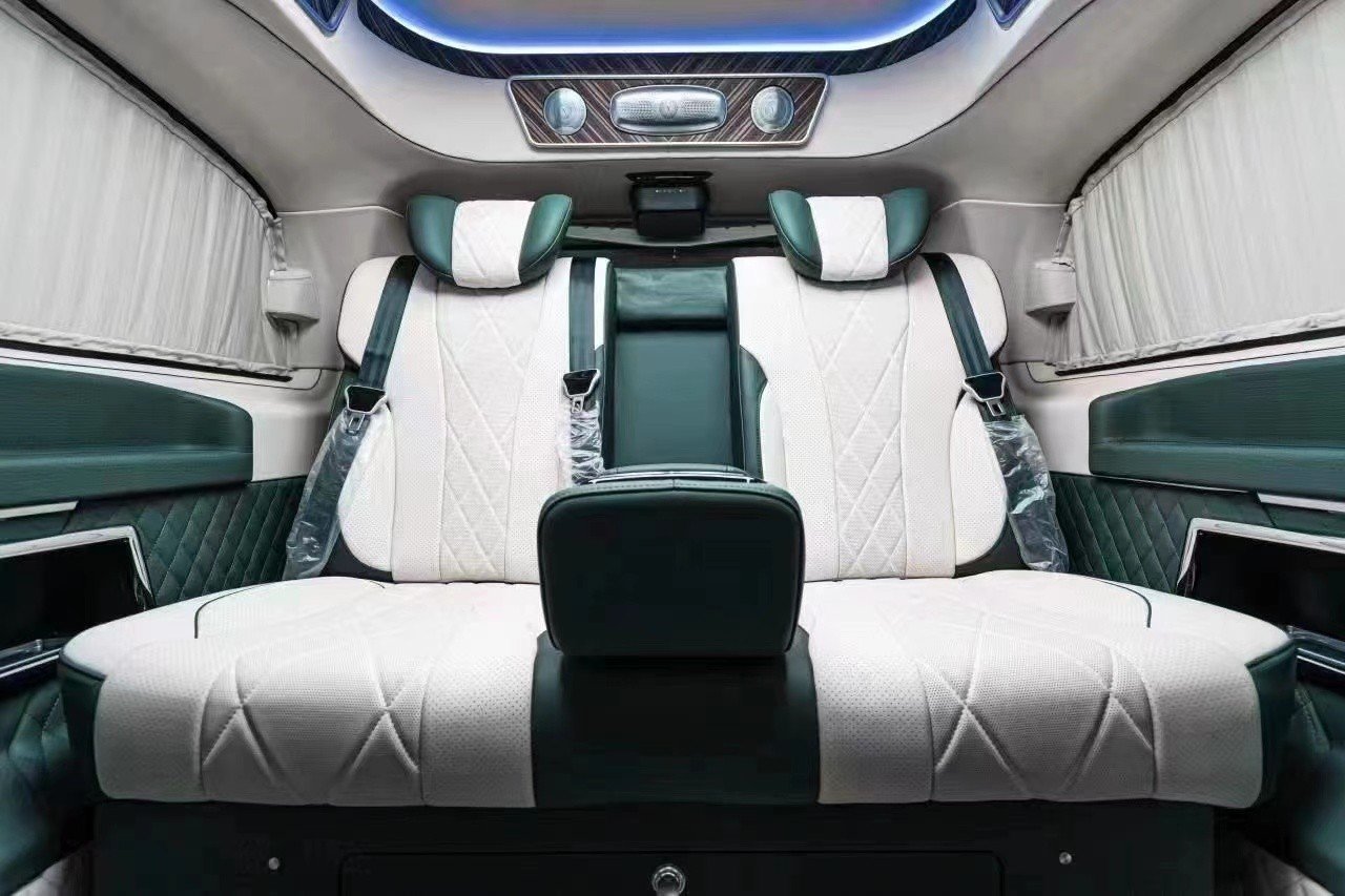 奔驰巴赫VS98S商务车系列改装隐藏六座炮筒式仪表盘,造型时尚,奔驰威霆商务车中央是一块高分辨率驾驶显示屏,科技配置还有超薄液晶电视、8.1寸独立悬浮屏、蓝光播放器以及DVB-T信号接收系统等。进口奔驰V250商务车中央扶手箱,被设计成了一个拥有最冷可达零下18度的车载冰箱,夏日出行更为便捷!还有多种辅助系统保护您的安全,例如:定速巡航系统、胎压监测系统、碰撞预防辅助系统、360度全景摄像头等等。